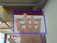 We present a mobile device application that uses information from Wi-Fi signals and from the device’s camera to help the localization estimation in indoor environments. The application runs entirely on the mobile device without relying on an external server to achieve real-time performance. The estimation of the localization using camera information is accomplished by keygraph matching between previously selected sign images whose location are known in the environment. The estimation of the Wi-Fi localization is implemented using a naive Bayes classifier on the signals of existing local wireless networks. The final estimation is achieved by using the latter as a rougher estimation of the device location while no sign is detected and, when the device gets closer to a sign, by using the camera to refine the initial Wi-Fi estimation to obtain a much more precise localization. We show results obtained with our approach on a local indoor environment.